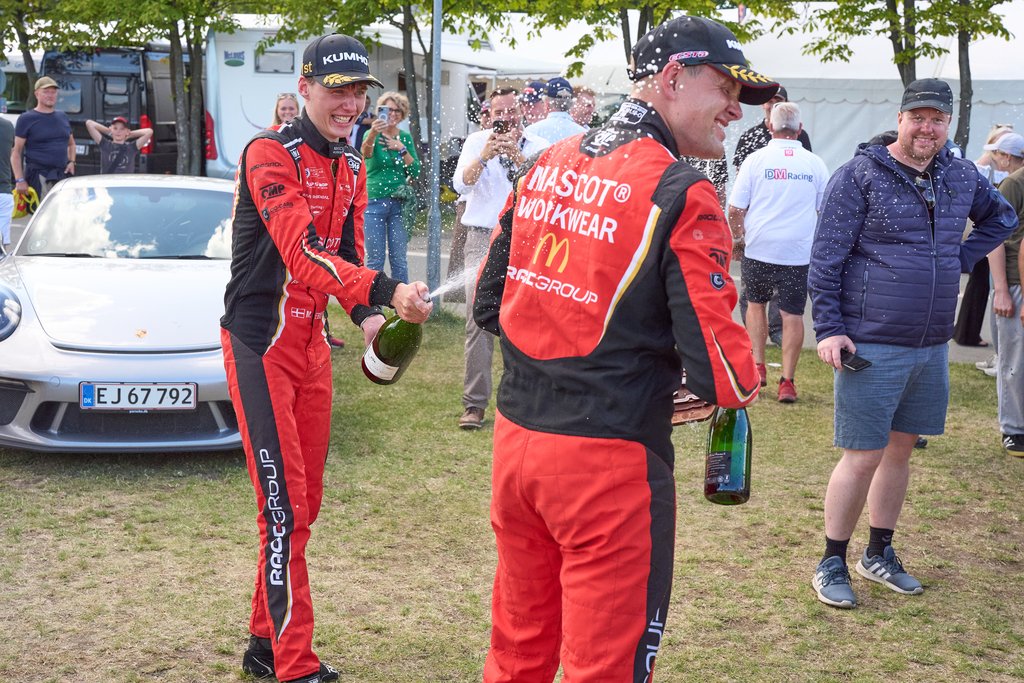 En imponerende start fra Mike Halder betød, at tyskeren havde fundet vej forbi Kasper H. Jensen, Malte Ebdrup og Jan Magnussen allerede efter to sving, og TPR Motorsport-køreren kom hurtigt det sidste stykke vej til førstepladsen - men en forbremsning gjorde, at de to RaceGroup-biler kunne passere Halder, der med nød og næppe fik kontrol over bilen og kunne fortsætte løbet.