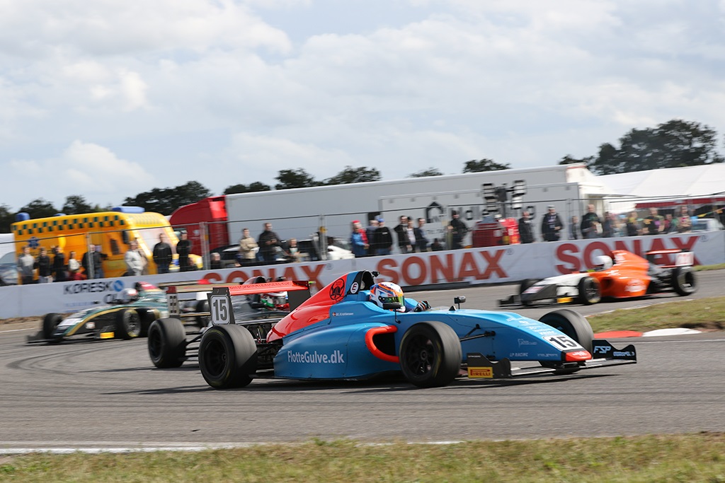 Nordic 4Det blev et løb med en serie gode og knapt så gode kampe om pladserne. Efter en genstart blev feltet samlet og sejren tog Marius Kristiansen foran Sebastian Bach. Tredjepladsen nåede F5 køreren Mads Hoe at score i et tæt opløb.