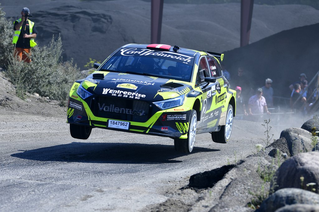 efter en dramatisk sortie i European Rally Trophy-turneringen Med en dramatisk rulletur i det tjekkiske ERT Agrotech Rally i juni en stærkt molesteret Hyundai i120 Rally2 forsvandt Vallentin Rallysports chance for et godt resultat i årets European Rally Trophy-turnering.  Der bliver kørt tæt i lørdagens razzmatazz. Simon Vallentin kender prisen for at køre for tæt på grænsen til det mulige, men det bliver tæt på. (Foto: Morten Dam)