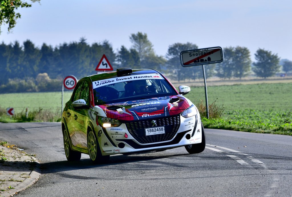 Et af landets mest talentfulde rallyhold, Lasse Karlshøj og Isabell Kvick, opnåede en mere end anerkendt sjetteplads med deres Peugeot 208 Rally i Rally Midtsjælland (Foto: Morten Dam)