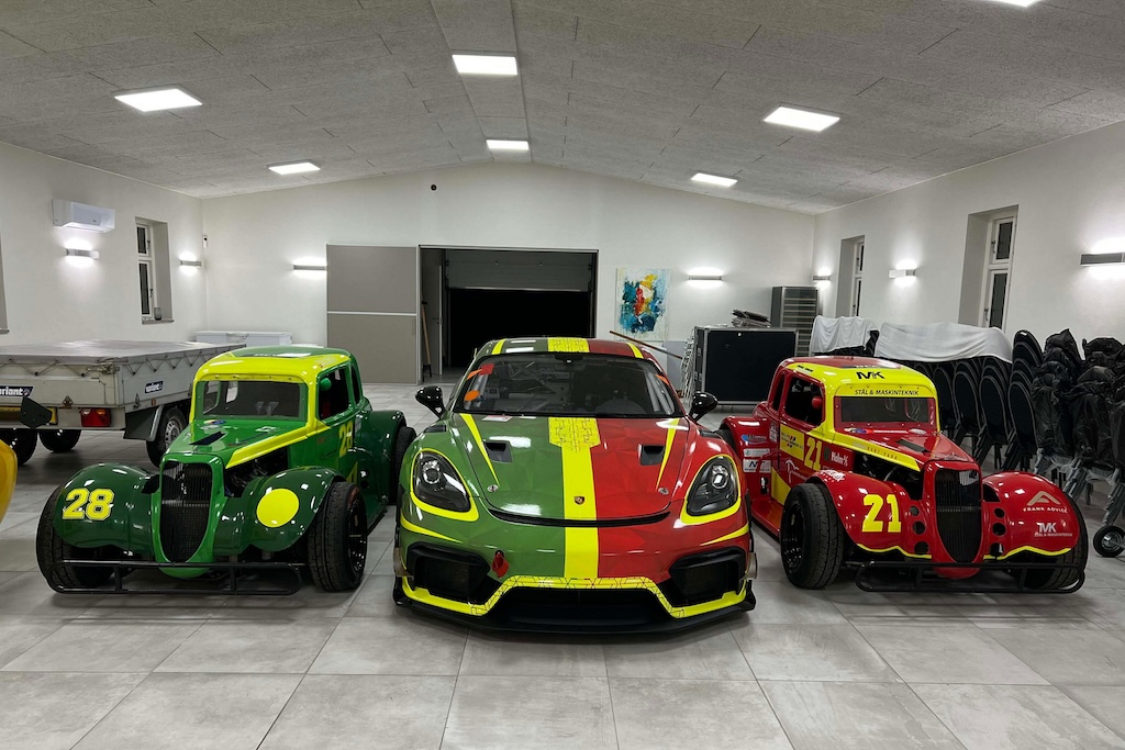 Farvekortet er blevet blandt godt. Grønt fra Franks Legend-racer og rød fra Mikkels Legend-racer til deres fælles racer i DEC-serien, en Porsche 718 GT4. (Foto: FM Racing)